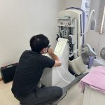 【牽引装置メンテ】リハビリルームの 腰の牽引装置の1台が ご機嫌ななめになり、 本日、業者さんに点検・調整いただき、 無事に稼働するようになりました。